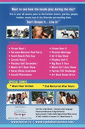 Want to see how the locals play during the day? This is your all access pass to the hottest places, events, parties, people, fashion, exotic toys & the lifestyle surrounding them. Featuring over a dozen segments such as: Versace Mansion, Miami Auto & Boat Shows, Fashion Week, Art Deco Events & where to go on Lincoln Road.